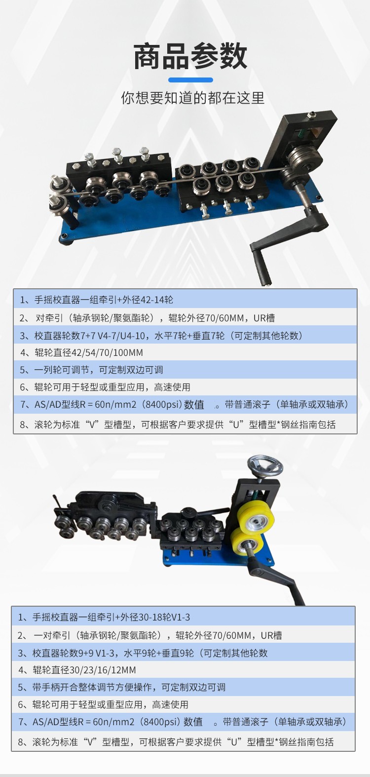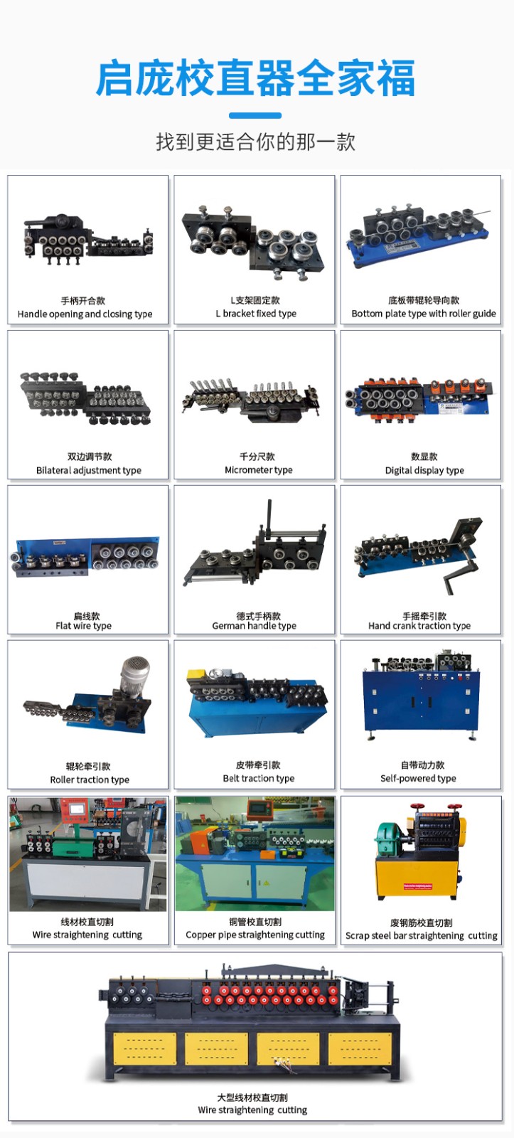 手摇校直器实心材质1-8mm,铜铝管6-20mm都可以,不同规格可以定制。启庞公司主营校直器、矫直机、手动矫直器、自动送料调直机、液压调直切断机、飞剪下料机、追剪开料机、铜管开料机、成型机、折弯机、弯管机等一系列调直下料成型设备