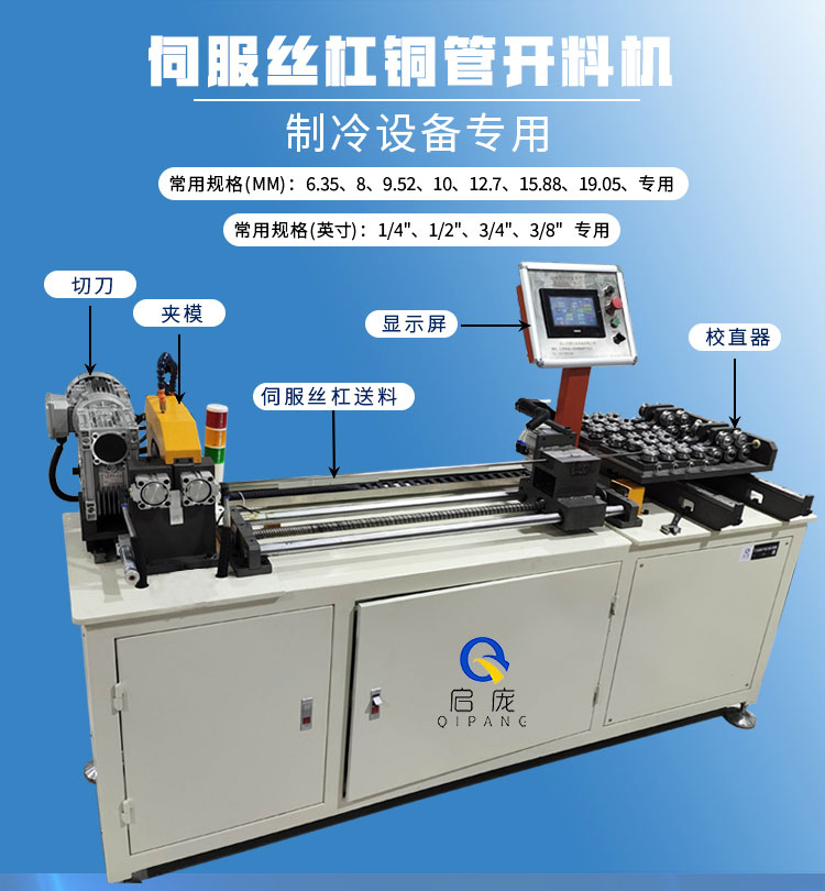 上海启庞主要生产:数控矫直机和切割机、电动矫直机、手动矫直机以及牵引送料系统。钢管数控矫直机和切割机适用于各种管材,如铜管、铝管、不锈钢管、邦迪管和铁管,适用于圆管