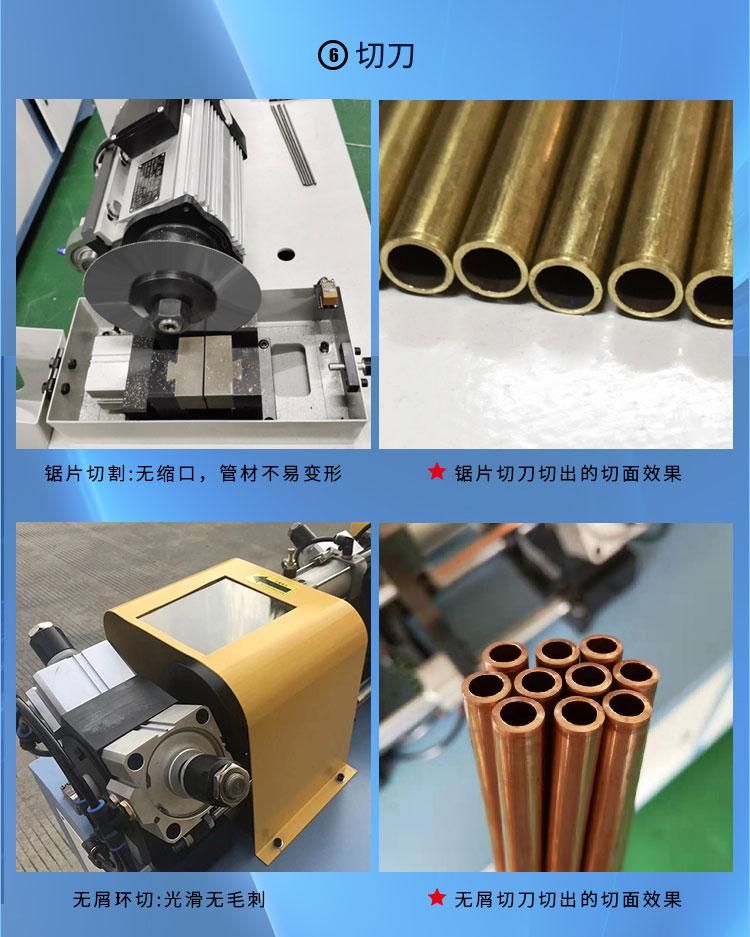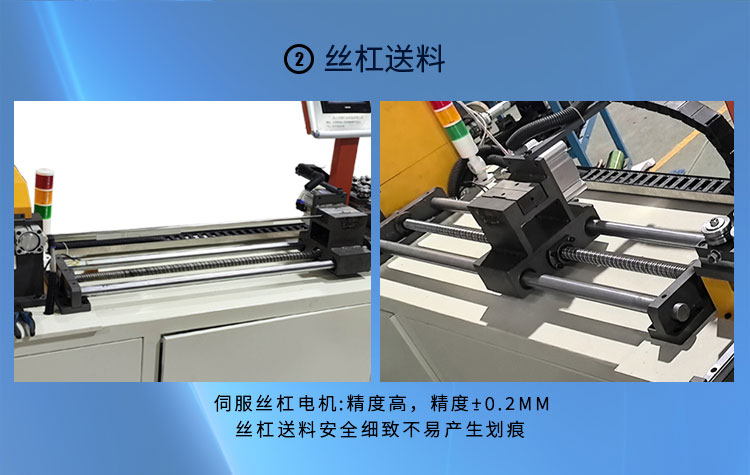 和滚珠丝杠进给,确保材料长度准确;管材切割方法:锯片切割,端面不收缩或变形;或环形刀切割,